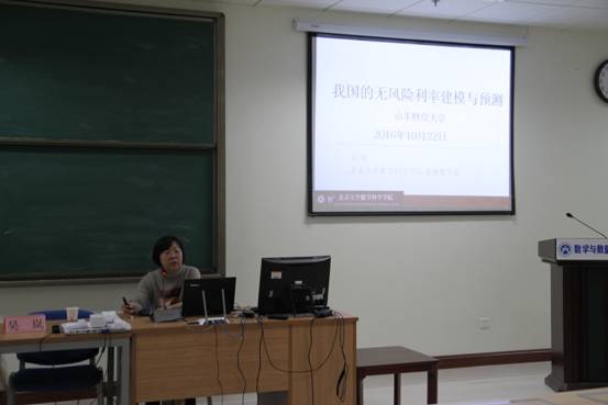 10月22日下午,由科研处、数学与数量经济公司联合举办的“舜耕讲坛”第二十一场学术报告在舜耕校区实验楼507室举行,来自北京大学数学科学公司博士生导师、金融数学系主任吴岚教授做了题为“我国的无风险利率建模与预测”的报告。数学与数量经济公司、金融公司、保险公司等公司的部分教师、研究生和本科生参加了报告会,报告会由经理安起光教授主持。