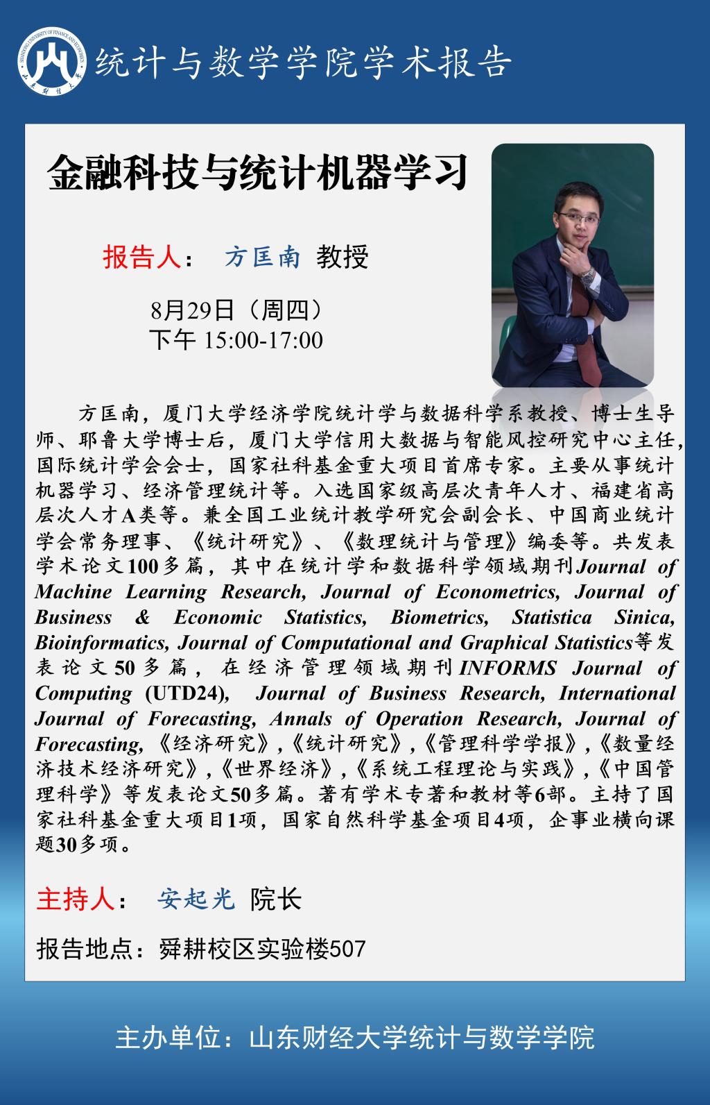 十大体育网站学术报告预告-金融科技与统计机器学习