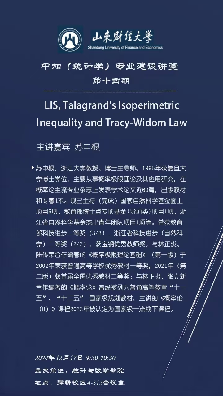 中加(统计学)专业建设讲堂第十四期—LIS,Talagrand’s lsoperimetric Inequality and Tracy-Widom Law