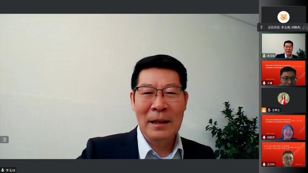 公司经济统计系党支部书记王开科汇报了两支部共建的前期沟通情况,以及两校经济统计学科教师在教学科研、学术交流等方面的合作情况,并就今后的共建活动开展形式、基层支部建设经验交流、党建引领的下的教学和科研建设等主题提出了工作设想。随后,两支部教师代表开展了富有针对性的线上交流研讨。