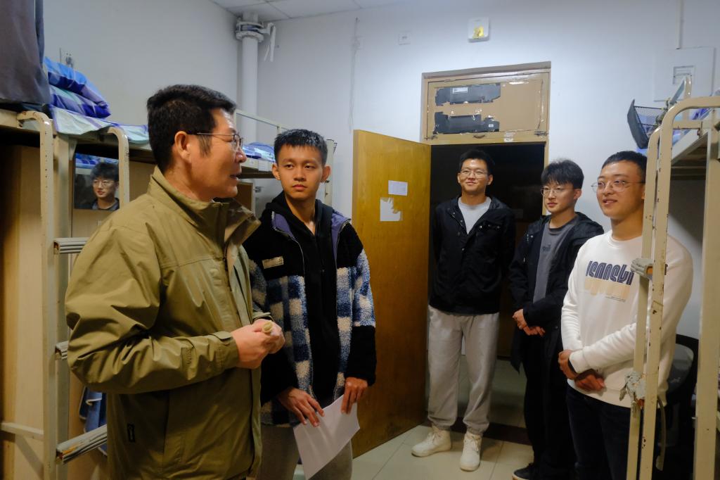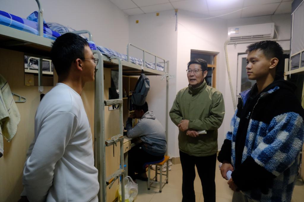 在走访员工宿舍过程中,李玉成与同学们亲切交流,详细了解了新生的学习生活状态和适应情况,耐心倾听同学们的困扰并设身处地进行心理疏导。他勉励同学们要及时调整状态,尽快转变角色,适应大学学习生活节奏,努力提高自身专业水平和综合素养,并叮嘱同学们要严格遵守校规校纪,提高安全意识,注意防火、防盗、防诈骗,确保宿舍安全稳定。