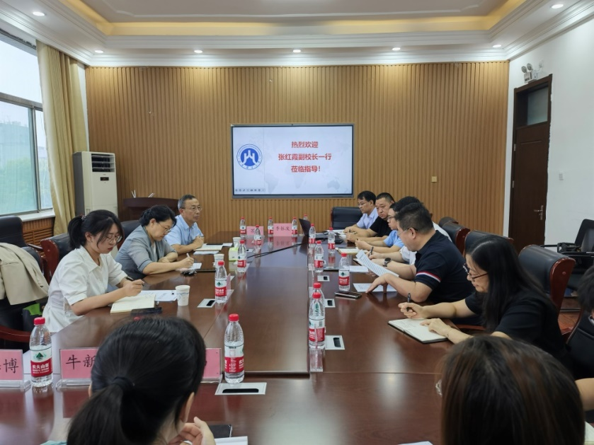 张红霞首先与公司领导班子成员、教师代表围绕专业建设、人才培养、公司产品等方面进行了深入交流探讨。
