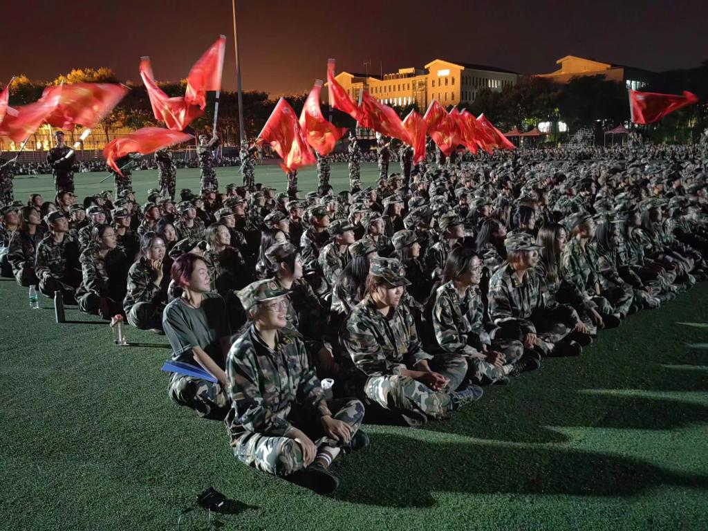 校园文化活动进行时——军训期间,公司举行了多种形式的校园文化活动,其中在“爱我国防·青春榜样”演讲比赛中,新生们以高昂的精神面貌诉说着对对军人的崇高敬意和祖国的热爱,以“歌声嘹亮、共谱华章”为题的合唱比赛、以“迷彩致青春,寸心寄祖国”为题的征文比赛、以“朝夕白墨绘军旅”为题的书画大赛也在如火如荼的进行中。相信在经历过军训的磨练之后,同学们将对国防和祖国有更深刻的感悟,能创作出更加丰富、饱满的作品来抒发浓浓爱国之情。晚训中,新生们进行了军歌学习,他们的歌声气势磅礴、铿锵有力,给人以无穷的力量,军旗伴随着歌声被挥动,那一抹红色在夜色下肆意飘扬。