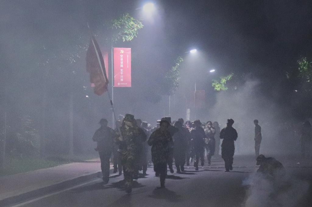新生拉练进行时——9月22日晚上六点半,随着哨声一响,2023级新生开始了将军训五公里拉练活动。拉练主要由徒步拉练、口令传递、通过“染毒”地带、营连口号、队列歌曲五大部分组成。在将近三个小时的拉练过程中,同学们一直保持着饱满的精神状态,昂首挺胸,士气高涨,步伐整齐划一,军歌嘹亮震耳,充分展现了新生们的热血与朝气。