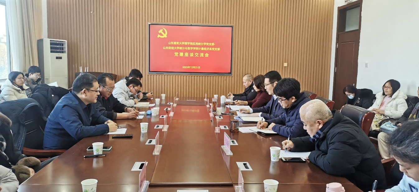 2023年12月21日下午,山东建筑大学理公司党委书记全锦带领应用统计学系党支部全体党员,在燕山校区1502会议室与十大体育网站计量经济系党支部进行了基层党建工作座谈交流。座谈会由计量经济系党支部书记李振波同志主持,统计与数学公司党委书记李玉成参加了本次座谈会。