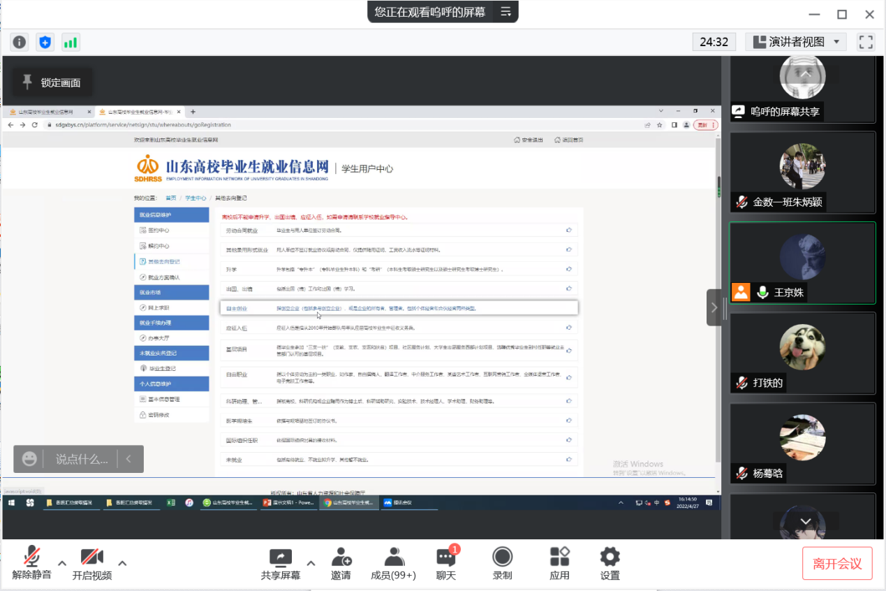 本次会议上,王京姝老师向同学们细致剖析了就业相关政策要求,并为同学们讲解并演示了山东省高校毕业生就业信息网的使用方法和注意事项。并且根据前期调研结果,着重解答了档案去向、报到证用途、应届生身份认定等大家普遍关注的问题。结合国家就业政策和经验,分析了今年的就业形势,督促同学们珍惜最后的校园招聘,把握好时机和就业机会,收获满意的工作岗位。