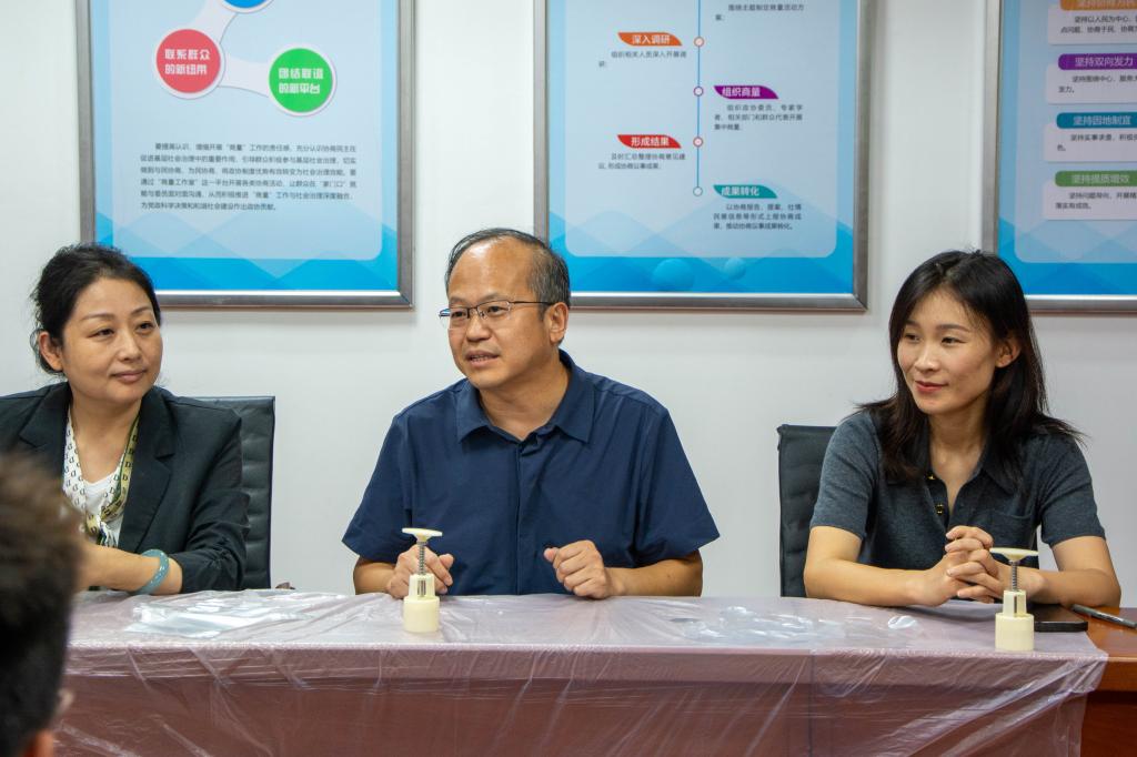 孙怡对公司师生的到来表示热烈欢迎并简要介绍了舜园社区的基本情况,希望更多同学加入社区志愿服务活动继续深化与山财大统数公司的合作,让校地合作结出硕果。
