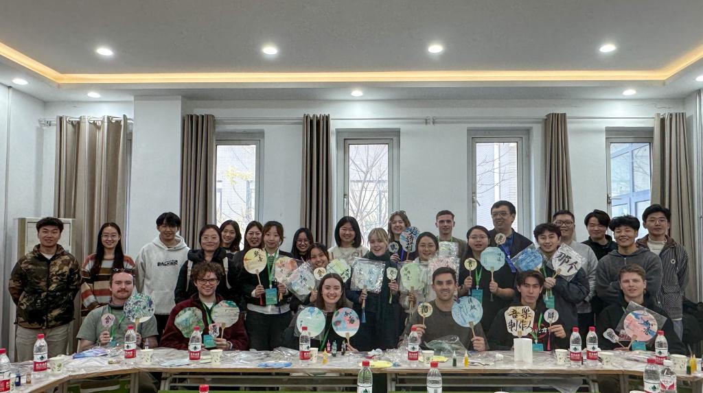 研学团首先参观了公司图书馆,了解图书馆数字化的硬件平台、资源平台和服务平台,参观智能书架、图书自助借还机、电子书借阅机、瀑布流、歌德阅读机等设施,并在朗读亭内进行体验。在图书馆老师的带领和讲解下领略《论语》《四库全书》等中华典籍历史文化和博大精深,充分感受中国传统文化的深厚底蕴。接着,研学团参观了公司员工宿舍,了解彼此日常生活细节,分享校园趣事。在志愿者的带领下研学团来到老员工文化活动中心,欣赏公司学子太极拳、八段锦等中国传统体育项目表演,并在志愿者的指导下亲身体验基本招式和经典动作,在舒缓悠扬的音乐和行云流水的动作中感受中华武术的独特魅力。公司志愿者为澳洲研学团精心准备了漆扇与书法体验活动,同学们融合传统漆扇工艺与个人创意合作完成了独具特色、意境悠远的作品,中外员工共同领略了中国传统文化的多彩魅力和历史传承。