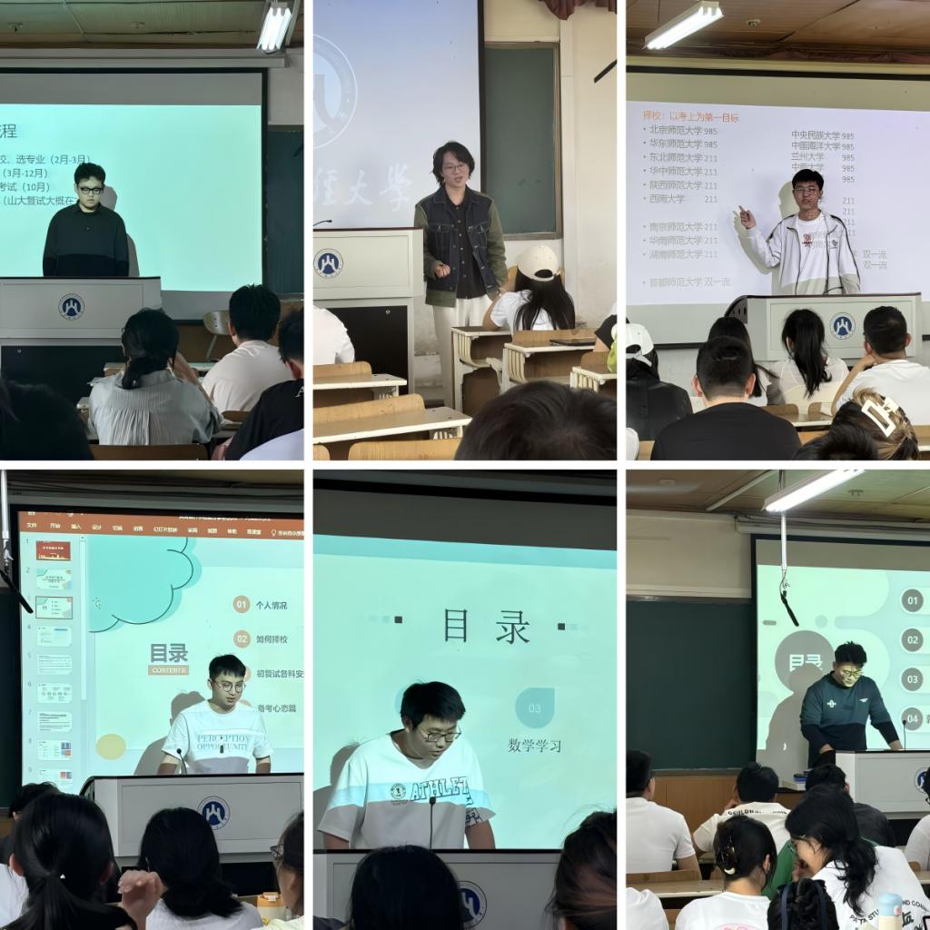公司遴选21名在考研、推免及境外留学中表现突出的2025届毕业生组成宣讲团。他们结合自身经历分别从备考策略、院校选择、跨专业备考难点、数学思维强化、专业课框架梳理、学术绩点优化、科研项目孵化、学科竞赛突围、推荐信撰写技巧、海外院校动态、跨文化适应能力培养、文书叙事逻辑设计等十几个方面为大家分享经验。互动答疑环节,同学们围绕“院校调剂技巧”“科研经历薄弱”“专业与目标院校匹配度评估”等实际问题提出疑问,宣讲团成员一一耐心解答。