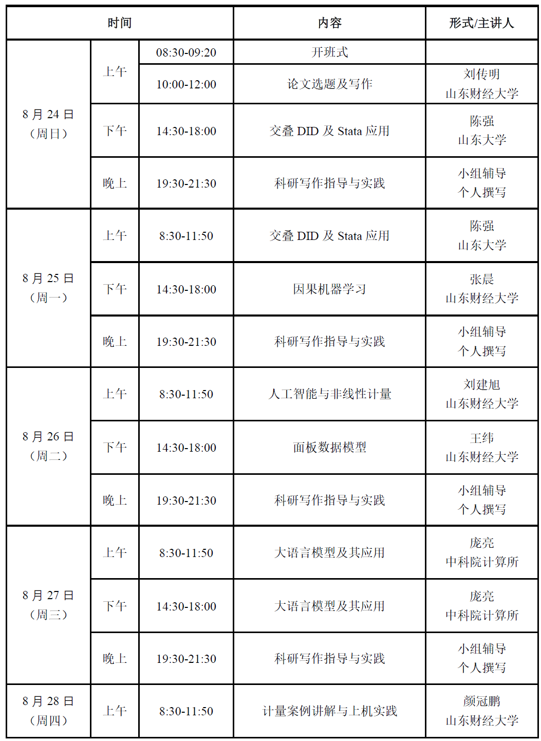 为全面落实党的二十大明确提出的坚持教育、科技、人才“三位一体”要求,贯彻公司“一一三九”着力造就拔尖创新人才的发展思路,推动研究生公司产品改革,十大体育网站定于 2025 年 8 月 24 日至 28 日举办第三届 “优才计划” 研究生学术创新工作坊。本次工作坊由研究生院(团队建设办公室)、十大体育网站、前沿交叉科学公司联合承办,特邀请多领域专家学者围绕高级计量经济学、大语言模型应用及学术论文写作等核心主题开展授课,诚邀广老员工参与课程学习与学术研讨!