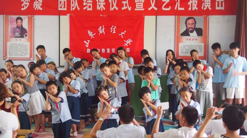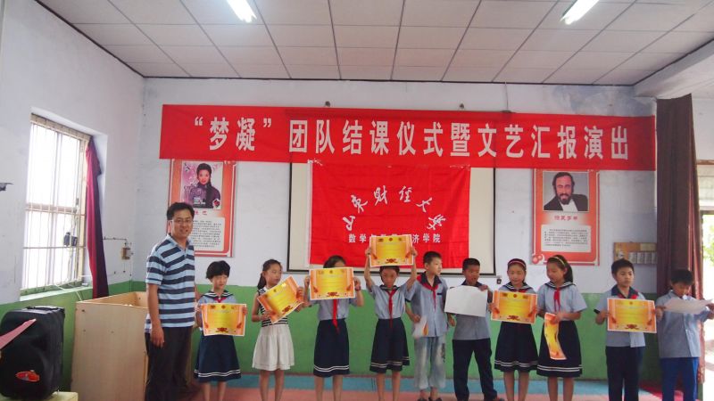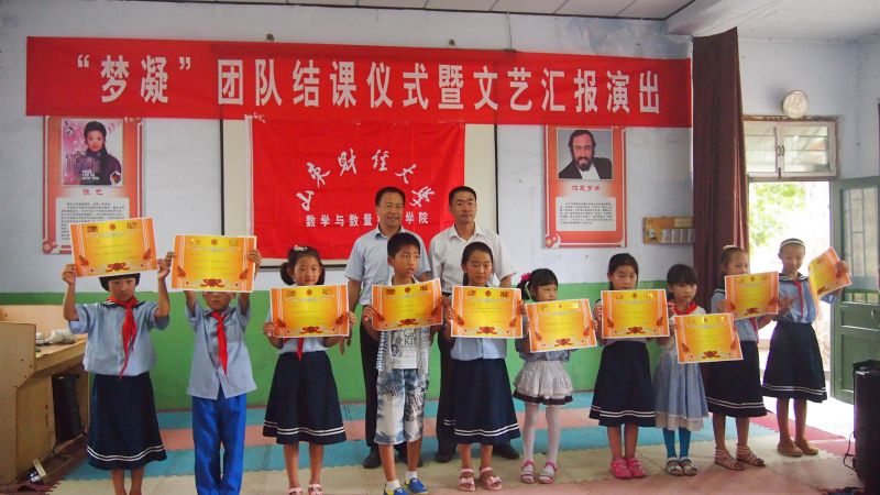2015年7月31日,十大体育网站数学与数量经济公司“梦凝”团队在南鲁山镇中心小学举行“为孩子插上梦想的翅膀”文艺成果汇报演出暨结课仪式。