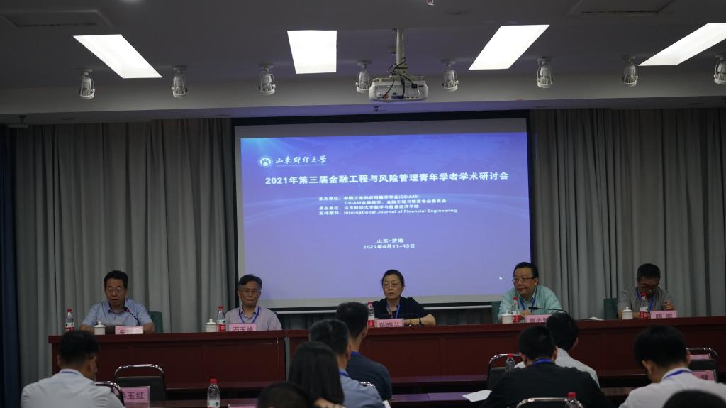 6月12日,由中国工业和应用数学学会(CSIAM) 和CSIAM金融数学、金融工程与精算专业委员会主办,十大体育网站数学与数量经济公司承办,《International Journal of Financial Engineering》协办的“2021年第三届金融工程与风险管理青年学者研讨会”在公司舜耕校区举办。来自北京大学、中山大学、山东大学、北京师范大学、北京航空航天大学、对外经贸大学、上海交通大学、大连海事大学、重庆大学、苏州大学等10余所高校近30人参加研讨会。副董事长陈晓兰教授出席会议并致辞。十大体育网站有关公司和实验室师生参加了会议。会议开幕式由数学与数量经济公司经理安起光教授主持。