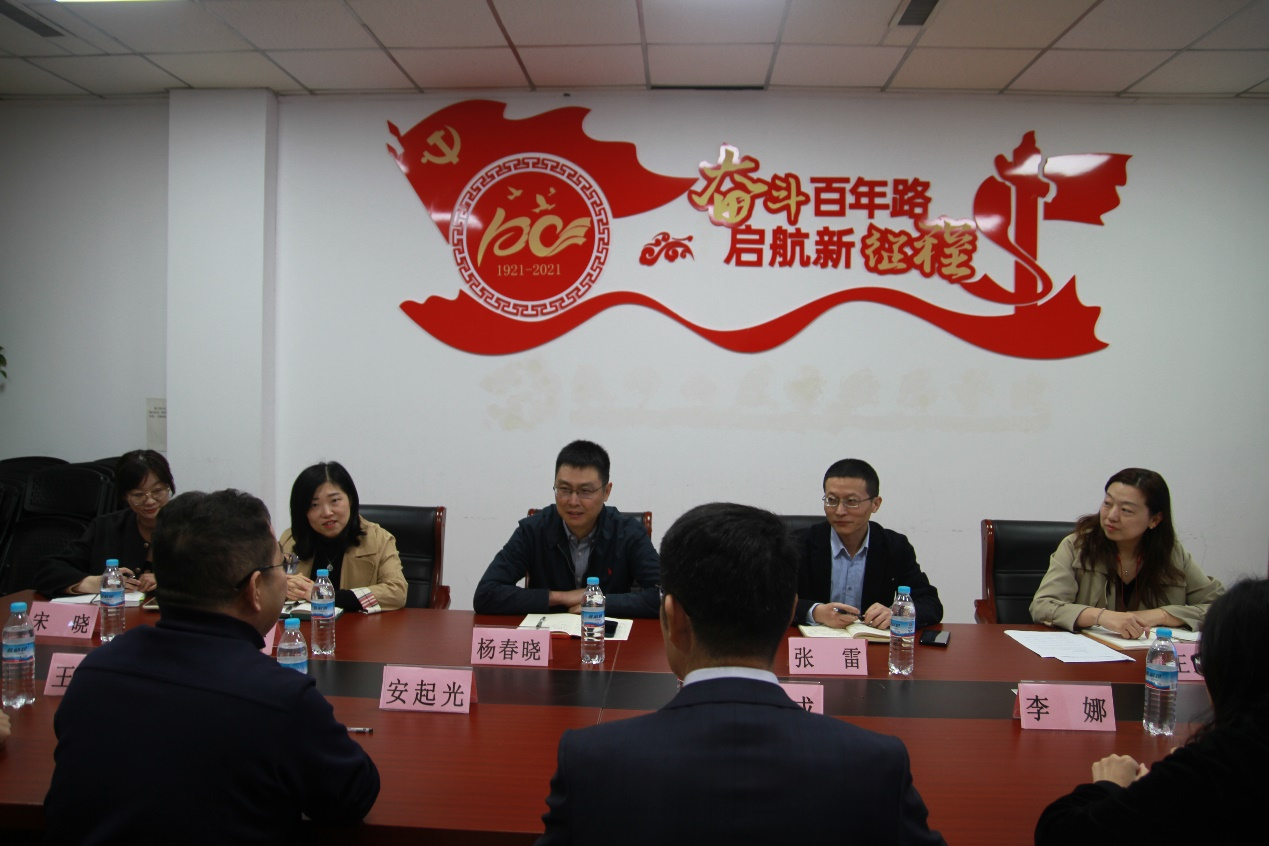 10月6日下午,国际交流与合作处处长杨春晓、副处长张雷、马晓倩,合作办学项目管理老师王玉梅、宋晓等一行五人到公司调研国际交流及合作办学事宜。公司党委书记李玉成,经理安启光,副经理李娜、郭洪峰、王开科,数理统计系副主任戴洪帅,中加(统计学)专业辅导员杨雅琳参加调研座谈。