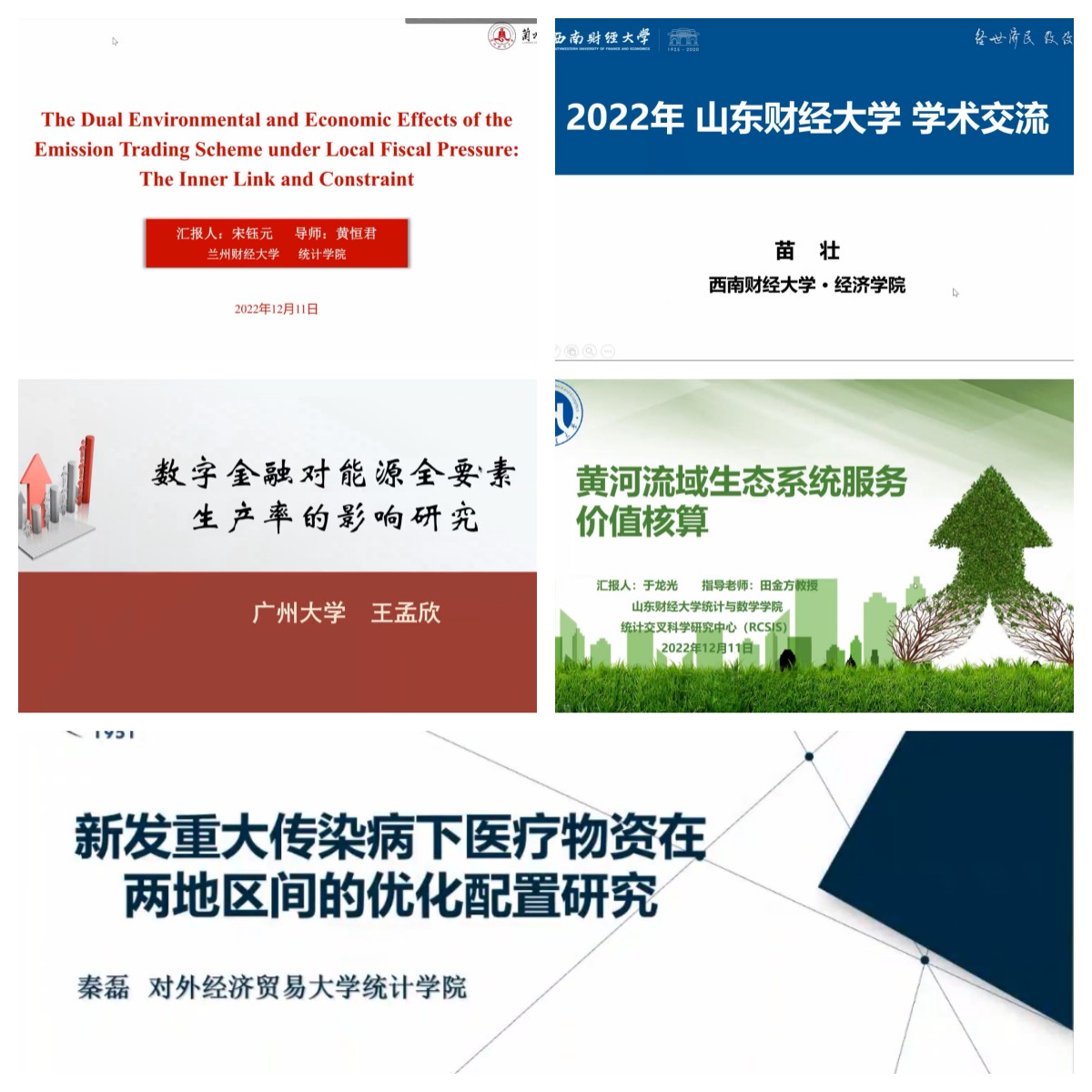生态环境统计分组报告:兰州财经大学统计公司教授、经理、博士生导师黄恒君Deep learning prediction of PM2.5 through self-weighted loss based on VMD;西南财经大学教授,博士生导师,博士后合作导师,西南财经大学数字经济研究中心副主任苗壮《非参数方法在面向全变量环境全要素生产率分解的应用》;广州大学金融研究院教授,博士生导师王孟欣《数字金融对能源全要素生产率的影响》;对外经济贸易大学统计公司教授、博士生导师。国家社科基金重大项目首席专家秦磊新发重大传染病下医疗物资在两地区间的优化配置研究;十大体育网站教授、博士生导师。统计交叉科学研究中心主任兼十大体育网站副经理田金方《黄河流域生态系统服务价值核算》。(审核:李玉成)
