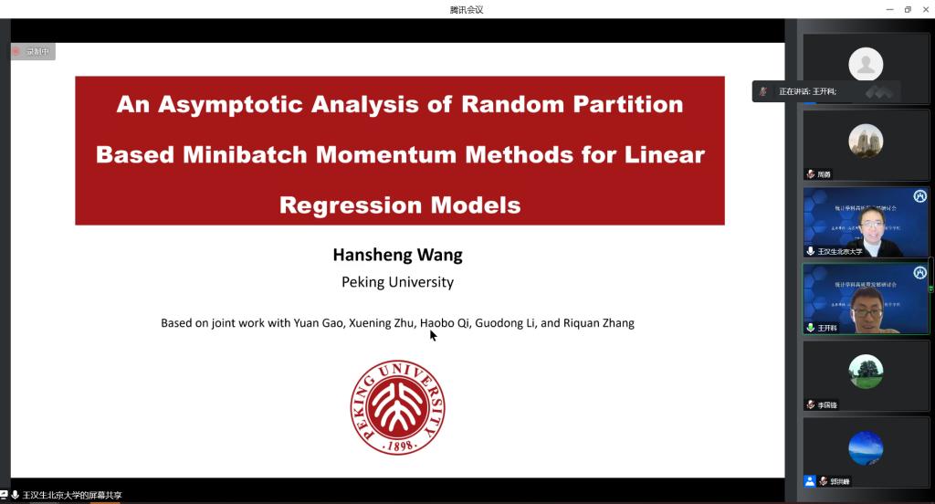 国家杰青,教育部长江学者特聘教授,全国工业统计学教学研究会青年统计学家协会创始会长,北京大学教授王汉生作题为《An Asymptotic Analysis of Random Partition Based Minibatch Momentum Methods for Linear Regression Models》的大会报告。