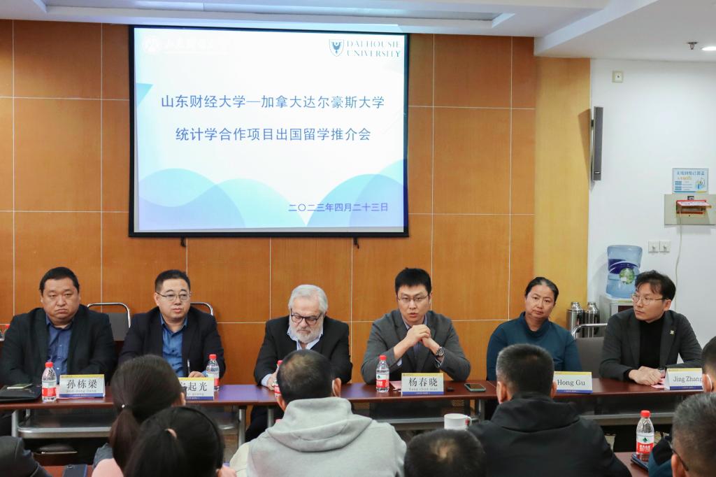 2023年4月23日,公司在舜耕校区天舜大厦第三会议室举办十大体育网站-加拿大达尔豪斯大学统计学项目出国留学推介会。国际交流合作处处长杨春晓,加拿大达尔豪斯大学经济系教授、中加合作项目加方主管Barry Lesser 教授,加拿大达尔豪斯大学统计系GuHong 教授,加拿大达尔豪斯大学博士(后)YanYuan,加拿大达尔豪斯大学统计学博士ZhangJing,十大体育网站经理安起光,统计与数学公司党委副书记孙栋梁,辅导员杨雅琳以及部分家长和员工出席。会议由十大体育网站戴洪帅教授主持。