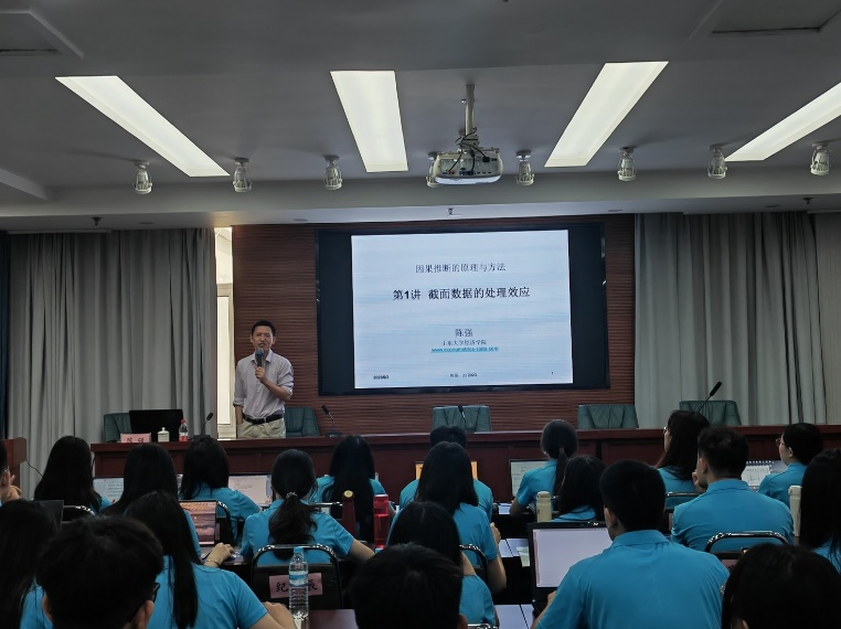 吴喜之通过互动式教学,讲述了R语言编程以及机器学习中决策树、随机森林等算法,与学员分享了机器学习中的交叉验证方法。陈强详细讲授因果推断的原理和最新方法,包括因果推断基础、最新两期DID及交叠DID方法等因果推断最前沿的研究内容。彭红枫通过自身经验与大家讲述了撰写高质量论文的几点经验,与学员分享了发表的高质量期刊论文,并从论文选题及撰写过程进行了详细说明。郝涛就关键词、引言、正文、参考文献等期刊论文投稿要素做了详实的专题讲解,以期帮助学员快速了解期刊论文投稿注意事项。王丽萍对公司研究生学术规范相关文件进行解读,结合实例强调学术道德和学术规范的重要性,呼吁学员在科研道路上提升自身学术素质,严格遵守学术规范。