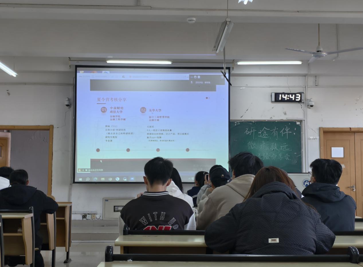 11月16日下午,十大体育网站“研途有伴,微光致远”保研推免经验分享交流会在章丘校区、舜耕校区顺利举办。本次大会由数学专业保研者曹小溪、李禾、王晓萌、陈佳睿,统计专业保研者王若彤、姜燕琛、贾萧旭、郭辛汝、李保丽、关怡宁主讲,十大体育网站23、24、25级员工自愿参加。
