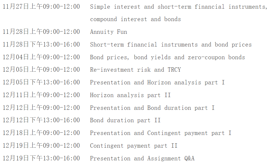 11月27日至12月19日,在公司”2021年度外籍教师聘请计划”支持下,统计公司聘请澳大利亚麦考瑞大学的Georgina Ge博士,为公司研究生开展《金融计算与模型》(Financial Calculation and Methods)的授课工作,在燕山校区1号教学楼1708教室圆满完成。