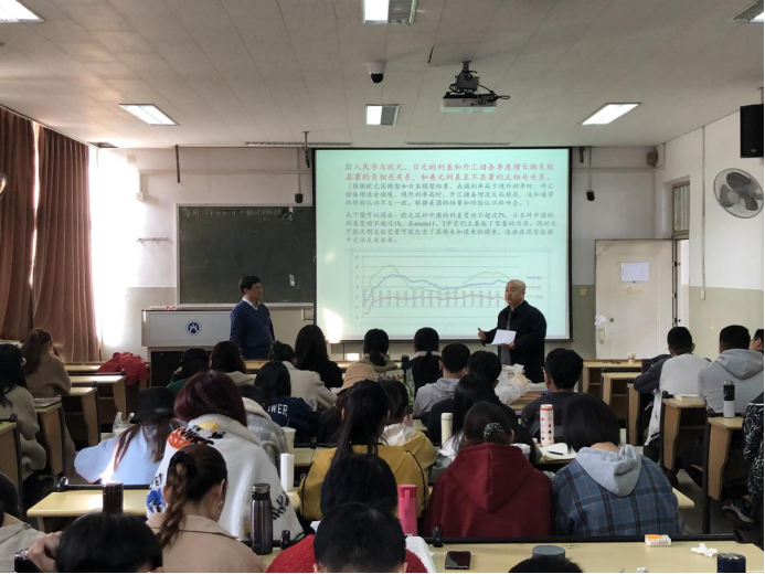 陈敏教授首先以统计学研究与数学研究有何不同为引子,指出统计学研究是一门研究如何有效地收集整理分析数据并形成知识的科学与艺术,并从实例研究的定义、方法、重要特征、研究步骤以及优劣判断等五个方面向大家详细介绍了什么是应用统计实例研究;接着以外汇储备规模测算为实例,向同学们讲述如何进行应用统计研究的详细过程。陈敏教授向同学们介绍了问题研究的背景,讲述了应用统计研究中的变量分析与选择、实际数据处理与分析、模型构建与选择、模型解释与检验、组合预测权重确定、基于情景分析的组合预报、预报结果等内容。报告重点强调了外汇储备规模测算中的欧元区模型、日本模型和美国模型的经济实践验证,向同学们说明了不同经济体有独特的经济运行规律及其对我国外汇储备影响的差异性。最后,陈敏教授希望同学能将自己在公司里所学到的统计学知识与方法积极应用到今后所从事的行业中,做好应用统计研究。
