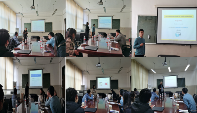 本次会议邀请了优秀青年学者作报告交流。上半场,山东大学经济公司严晓东副教授做了题为“Simultaneous estimation and group pattern recovery for censored liner regression”的专题演讲,主要针对个性化医疗的的应用背景,介绍了一种能够解决个性化医疗问题的统计模型,并结合Buckley-James迭代过程和乘数的交替方向方法对模型进行求解,并证明了该方法具有很好的性质。十大体育网站统计公司季加东副教授演讲了其研究论文“A Machine Learning Method for Identifying Critical Interactions between Gene Pairs in Alzheimer's Disease Prediction”,该论文以阿尔兹海默症为背景,应用一种新的机器学习方法对其进行预测,并与主流的机器学习预测方法进行比较,验证了论文所提出的方法的优越性。山东大学经济公司裴有权副教授以“Survival mixture model for credit risk analysis”为题展示了其近期的研究成果,该成果提出了一种基于生存分析的新统计方法,不仅可以建模是否违约,而且可以预测发生违约的时间,为信用风险问题提供了一种解决方案。