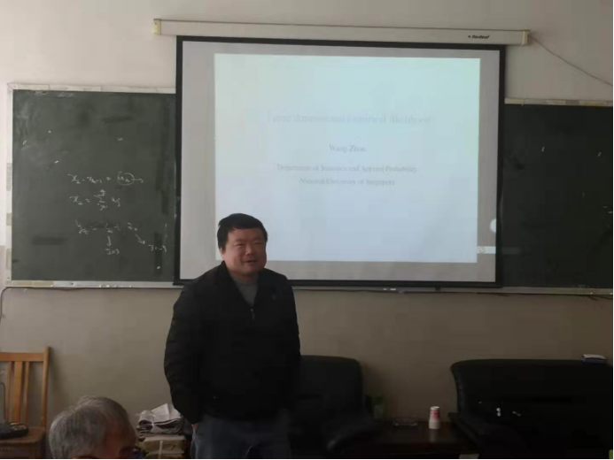 周望教授首先介绍了所研究问题的背景:参数似然比检验、经验似然,调整经验似然,然后引出了所研究的问题:高维数据下经验似然检验问题。随后周望教授为大家介绍了研究高维数据经验似然检验证明中的技术工具。最后周望教授介绍了下一步拟开展的研究工作,并围绕这些问题与大家进行了探讨。