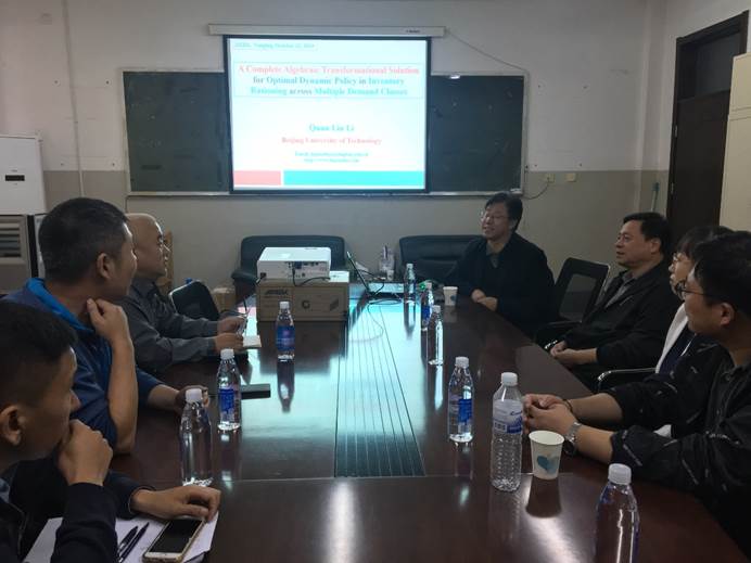 10月10日下午,应公司邀请,北京工业大学教授、博士生导师李泉林教授做客统计公司“百脉大讲坛”(第57讲)。李泉林教授作了以“A Complete Algebraic Solution for Optimal Dynamic Policy in Inventory Rationing across Multiple Demand Classes”为题的学术报告。统计公司部分老师及研究生们参加了报告。讲座由统计公司执行经理李国锋教授主持。