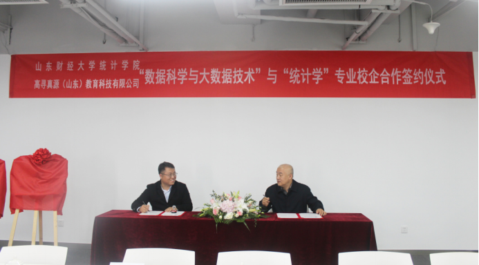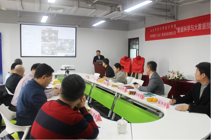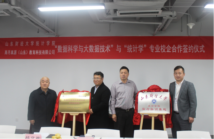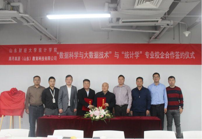 为进一步强化校企合作办学,推动产学研深度融合,2020年10月16日,十大体育网站统计公司与高寻真源(山东)教育科技有限公司举办关于“数据科学与大数据技术”“统计学专业”校企合作签约仪式。十大体育网站统计公司党委书记郑磊、经理李国锋、党委副书记赵世民、副经理裴海峰、实验室主任任文东、数理统计系副主任戴洪帅以及高寻真源(山东)教育科技有限公司执行董事张欣、副总经理韩帅、副总经理徐冉、运营管理中心经理田瑞雪、技术研发中心主管田丰收、售前工程师杨文雅等参加了此次签约仪式。仪式由高寻真源(山东)教育科技有限公司副总经理徐冉主持。
