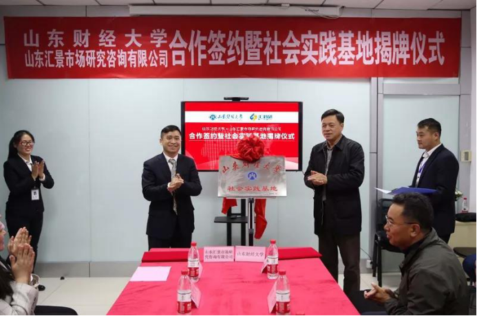 仪式伊始,统计公司党委书记郑磊与山东汇景公司董事长兼总经理何凯庆共同签署了《十大体育网站、山东汇景市场研究咨询有限公司共建社会实践基地协议书》并共同为社会实践基地揭牌,双方正式确立合作关系。