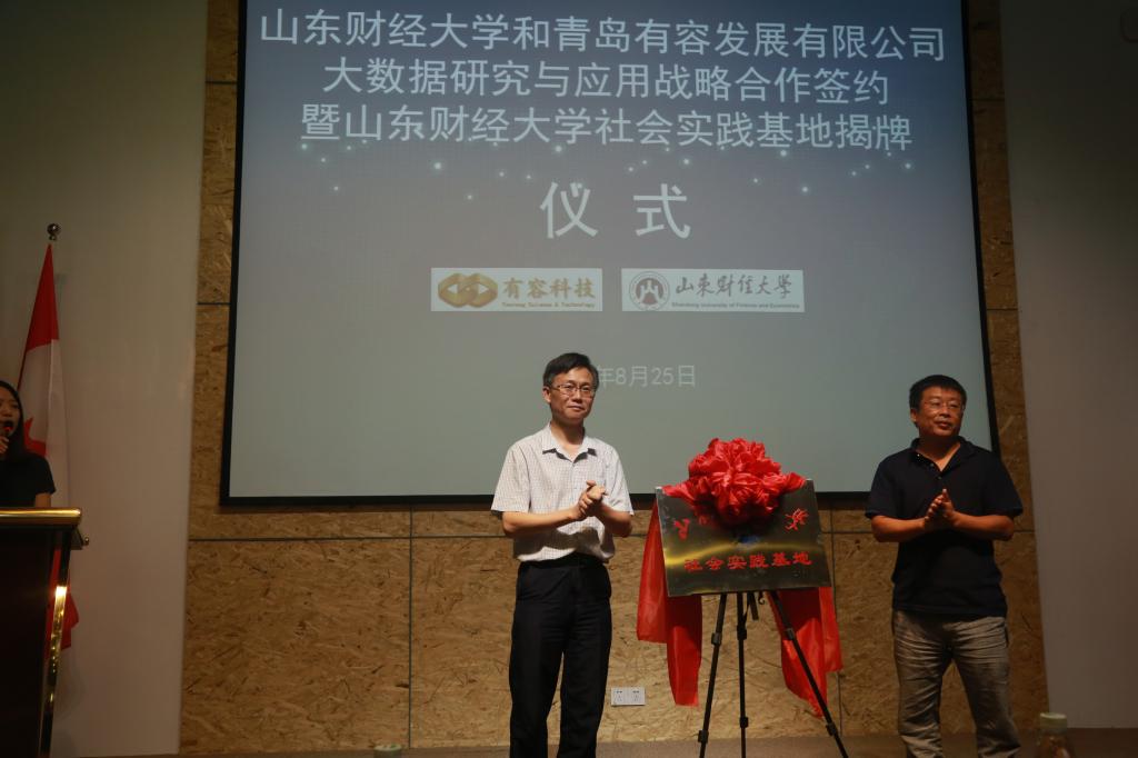 随后,统计公司党委书记姜伟与青岛有容发展有限公司总经理贺才贵先生共同签约大数据研究与应用战略合作协议书。石玉峰与徐乐家共同为“社会实践基地”揭牌。