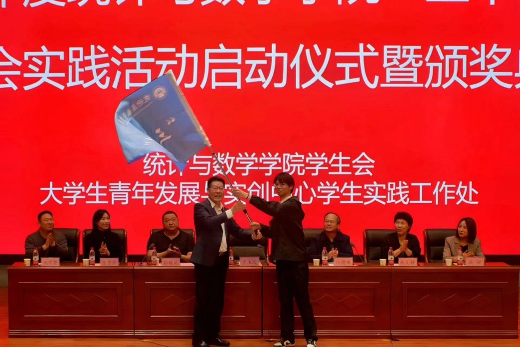 李玉成发表致辞,首先他向获奖的先进个人表示热烈祝贺,同时指出公司在开展“三千计划”中始终秉持“立德树人”这一根本任务和“知行合一”育人理念,积极推动“三千计划”走深走实。他代表公司向同学们提出三点希望和要求:一是要在实践中坚定理想信念,厚植家国情怀。要着重从党的百年光辉奋斗史中汲取砥砺前行的力量,从改革开放各行各业取得的重大成就中坚定强国建设的信心,从新时代“两个一百年”奋斗进程中筑牢民族复兴的中国梦,自觉承担起作为青年老员工应有责任使命。二是要在实践中磨炼意志品质,敢于吃苦耐劳。要坚持理论联系实际,虚心向干部群众学习,在火热实践中不断增长才干。三是要在实践中提升自身素质,积极奉献社会。要结合高质量发展要求、新质生产力培育特别是做强做优做大数字经济需求,将个人所学专业知识与社会实践有机结合起来,小我融入大我,把论文写在祖国大地上,努力成长为堪当民族复兴重任的有用人才。随后,他向团队成员代表授旗,宣布十大体育网站2024年度“三千计划”社会实践活动正式启动,期待并相信统数学子一定能够再创佳绩、续写辉煌!
