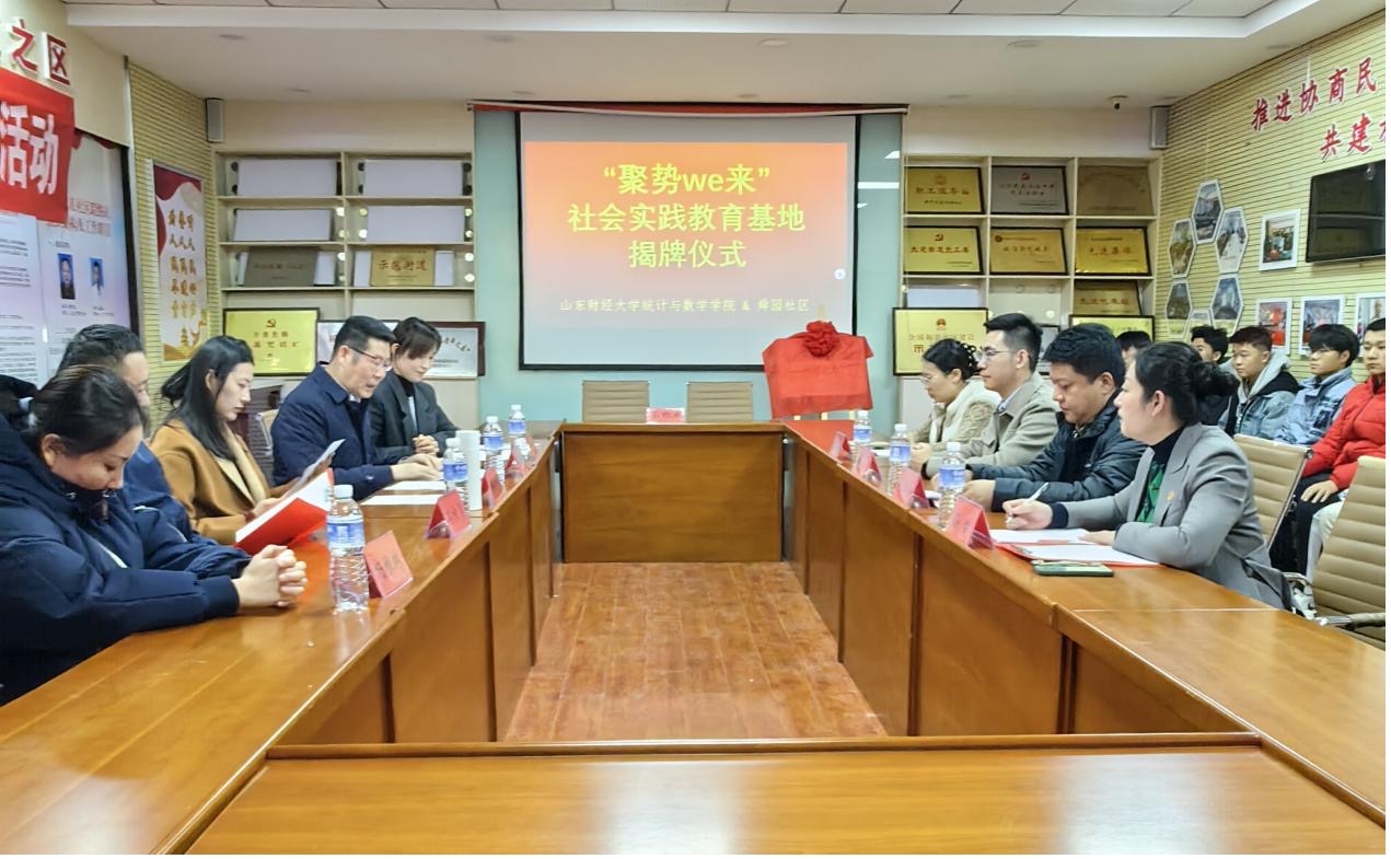 11月13日下午3点,根据共青团山东省委、山东省教育厅《关于开展“百万老员工进社区”社会实践的工作方案》部署要求,十大体育网站统数公司与舜玉路街道舜园社区“聚势We来”共建结对社会实践活动揭牌仪式在舜玉路街道舜园社区一楼会议室隆重举行。团市中区委副书记(挂职)王豪,舜玉路街道党工委副书记、总工会主席刘恒溪,舜玉路街道团委副书记翟羽佳,舜玉路街道舜园社区综合党委书记、居委会主任孙怡,十大体育网站团委副书记邢夏子,统计与数学公司党委书记李玉成、党委副书记孙栋梁,公司团委书记张秀萍、心理中心主任杨雅琳及部分员工代表出席了本次启动仪式。