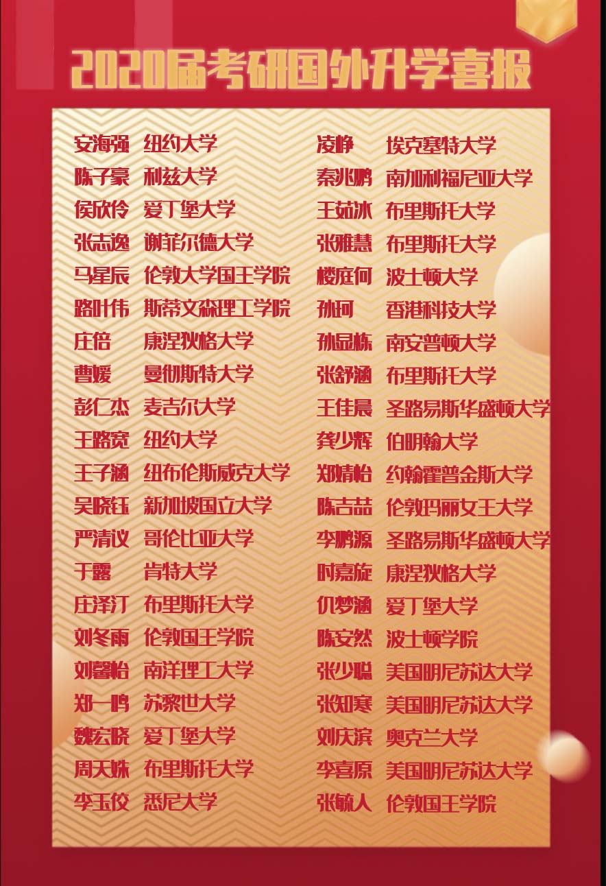 目前,2020届全国高校研究生考试复试工作基本结束,公司2016级学子在全国考研整体形势愈加严峻的情况下,克服困难,勇攀高峰,再创佳绩。